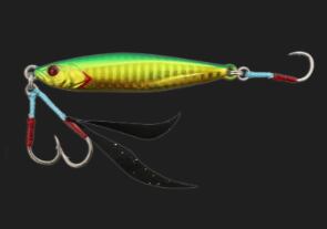 オリジナルのシリコンラバー製のネクタイがセットされておりフォール時やアクション時になびくことでアピールします。フックの位置を目立たせることで、魚が食いつく際の目印にもなり、しっかりとフッキングに持ち込みます。