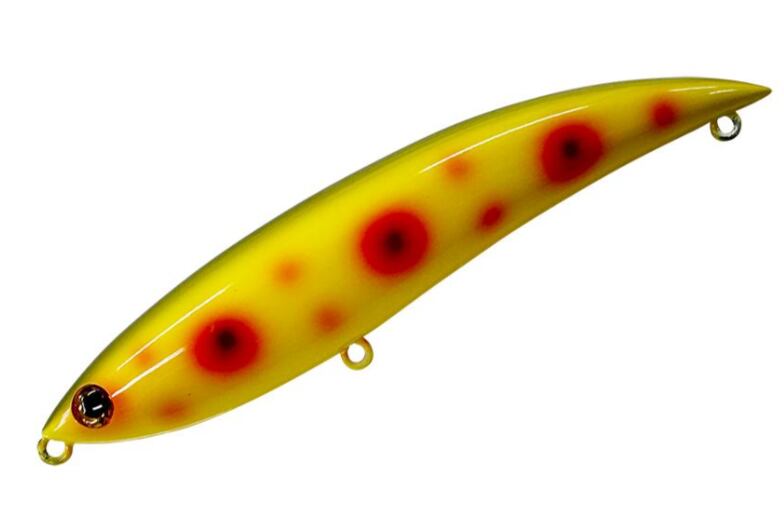 「スティッキー0をバス用サーフェイスミノーとして作るにあたり、その姿を、出来るだけ使い手がイメージするミノーから遠ざけ、それでいて、実際に動かした時に、誰もが確かにミノーだと納得できる機能を持たせ、そのギャップの大きさを楽しみたかった。
