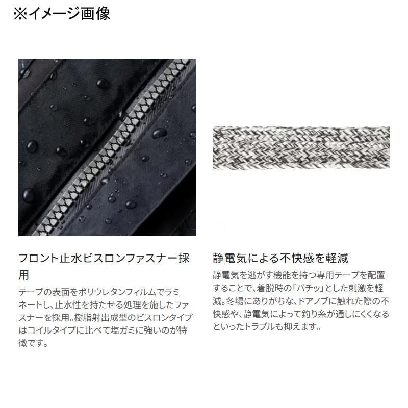 シーズンや気温に応じて防寒性を調整できるミドラーダウンが上下それぞれに付属しています。メイン生地にはY字形状の異形断面糸を使用した特殊織物を採用し、ダウン抜けを軽減しながら生地枚数を減らすことで軽量化を実現。さらにダウンには軽量で保温性の高い800FPダックダウンを使用し、化繊インサレーションとの2重構造設計で耐久性と軽量性をもたせることで過酷な環境での信頼性も向上しています。 ミドラージャケットはアウターとジョイントすることで着脱しやすい構造になっています。ミドラーパンツは裾を絞り、ズレ上がりにくいデザインです。 メイン生地には強度と軽量性のバランスが取れたゴアテックス®ナイロン2L生地を、動きやすさに影響の大きい腕、肩甲骨周りの生地にはゴアテックス®2Lストレッチ生地を、臀部や裾、腰回りなどスレる箇所の生地には200Dの耐摩耗ゴアテックス®2L生地を採用し機能性を高めました。 また、従来のePTFEメンブレンと同等の性能を保ちながら、より軽量なゴアテックス® ePEメンブレンを採用することで生地において10%軽量化(※)を達成しました。裏地には蓄熱効果のあるカーボン糸を採用し、試験結果ではカーボン糸なしの裏地と比較して約2~3度高い温度をキープ。冬の寒い釣り場でもアングラーの身体を保温します。この裏地はインナーやミドラーの滑りが良くなるため、レイヤリングコーディネートにおすすめです。また、リミテッドプロのロゴがエンボスされた専用デザインを採用しています。フードの内側にキャップを差し込むことでバタつきを抑え、強風時のめくり上がりを軽減。未使用時は内側に収納し、ツバが視界に入りにくくなります。 フローティングベストとジョイントすることで一体感が向上し、足元の視界の広さを確保。シューズなどにかぶせて足元の濡れを防ぎます。クロロプレンは内側にスキン面を採用し、水を吸い上げにくく、シューズとのズレを防ぎます。水を吸い上げないクロロプレン素材の内袖を面ファスナーでフィットさせることで水の浸入を軽減します。 アジャスターがフードに固定された構造で、片手でタブを引くだけでフィット感の調整が可能。ウェストサイズを腰に設けたBOA®フィットシステムで絞り込みフィット感の調整ができます、リリースはワンタッチで緩み着脱が楽に行えます。ファスナーはポリウレタンフィルムでラミネートし、止水性を持たせる処理を施したものを採用。樹脂射出成型のビスロンタイプはコイルタイプに比べて塩ガミに強いのが特徴です。 さらに、静電気を放電するテープを採用し、冬の着脱時やドアノブに触れる際の静電気の発生を軽減。これにより、冬の静電気による不快感を軽減し、快適な着用感を提供します。