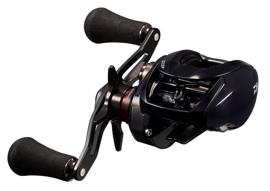 更に遠距離でのバイトも瞬時にロックフィッシュの硬い口へと貫通させる巻取り長(ギア比8.5)とフリーリグ~プラグまで操作しやすいハンドル長を選択。ラインテンションギリギリの攻防を音で支えるドラグ引き出しクリックも搭載。ファイト時の優位性、手返しのよさなど、常に主導権を握り続ける。