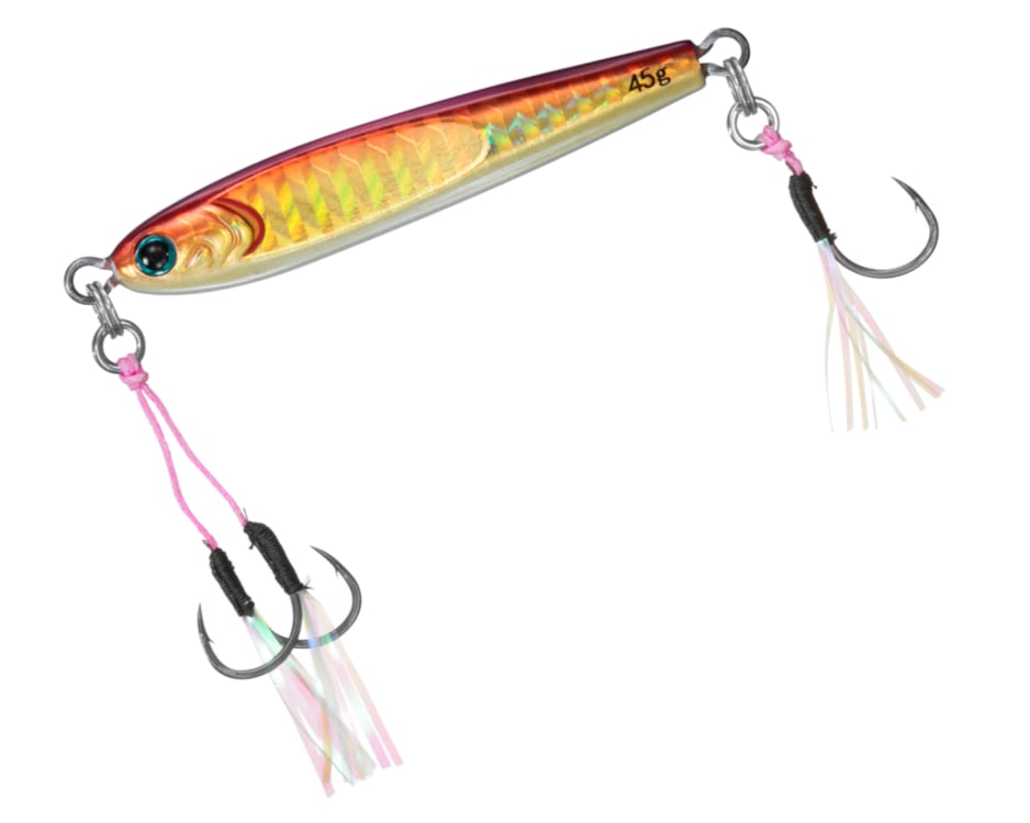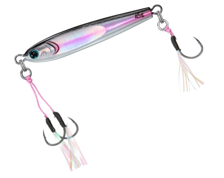 タイジギやイサキジギングなど、スーパーライトジギングに対応したTGベイトチューンナップモデル。こだわりのフックセッティングで死角のないフッキングを実現。非対称ホログラムの採用でフラッシング効果も抜群。アデルホログラムバージョンも追加されさらにラインナップ充実。