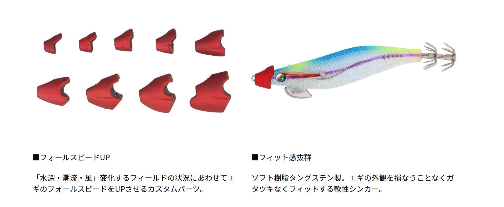 フォールスピードUP!フィールドの状況にあわせてエギのフォールスピードをUPさせるカスタムパーツ。