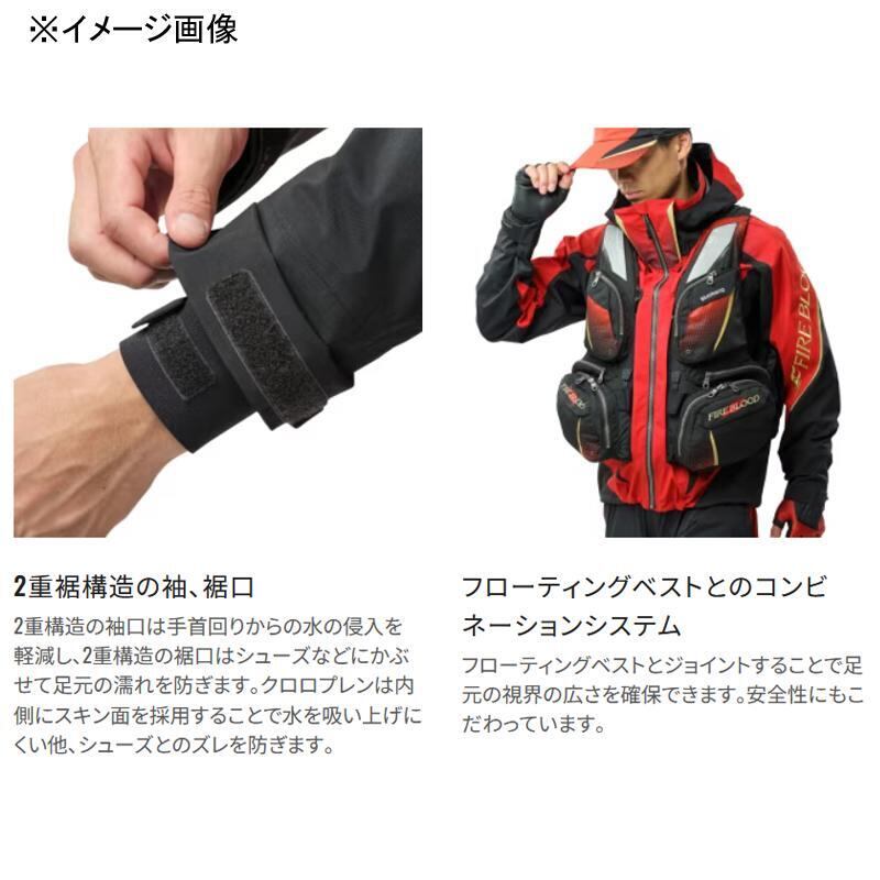 ●軽量に進化した新世代の磯用フラッグシップスーツ。メイン素材にナイロン70デニールGORE(R) C-KNIT Backer3Lを採用したフラッグシップレインスーツです。磯釣りの動きに特化した機能性を持ちながら軽量化に成功しました。耐久性が必要な箇所には200デニールの耐摩耗性の高いゴアテックスを採用し、適材適所の素材の配置で動きやすさと耐久性を両立させています。また、袖口の2重構造と裾口のバージョンアップで水の侵入をさらに軽減しました。キャップとのジョイントが可能なフードはキャップ未使用時にはツバがコンパクトになり視界を確保します。さらにフードには上下、前後に細かく調節できるドローコードも配置しました。ウエストはBOA?フィットシステムにより素早く簡単にフィット感をあわせることが可能です。フローティングベストとジョイントすることで足元の視界を確保するコンビネーションシステムも搭載しています。