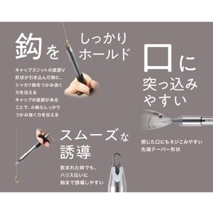 魚の口に挿入しやすい形状で、ハリス伝いに鈎に誘導できる使い勝手のよいフックリリーサー。