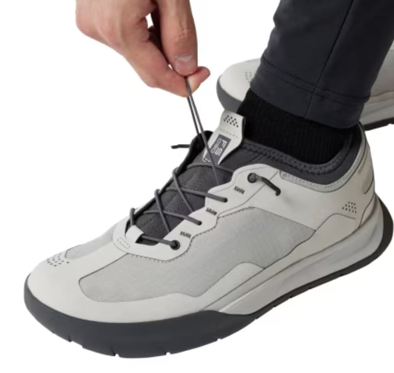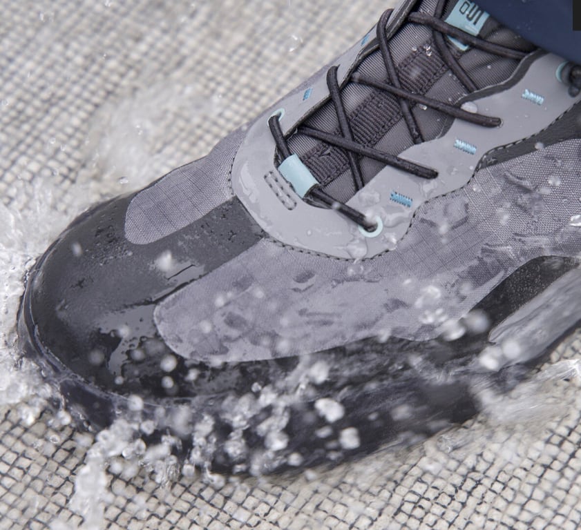 また防水仕様を採用していますが、ミッドカットではなくローカットすることで、脱ぎ履きのしやすさを重視しました。シューレースもゴム素材を採用。