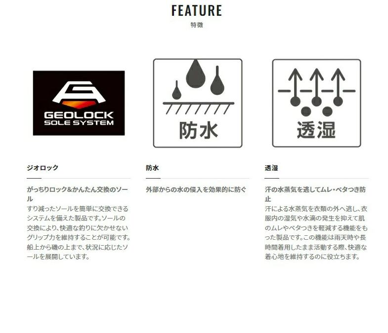 船上から磯の上まで、状況に応じたソールを展開しています。