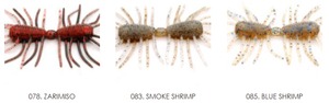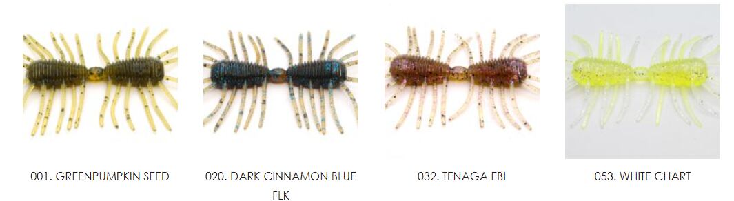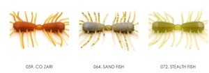 リトルサイズの2WAY誕生。2WAYはその名が示す通り魚の状態やシチュエーションに合わせて幾通りもの使い方ができるソフトベイトです。最もオーソドックスな使用法は、そのままセンターの球体部にマスバリを掛けたショートリーダーダウンショット。シンカーを上下させるイメージでややゆったりと大き目にアクションを加えることで、ボディが「くの字」に折れ曲がりながらロールすることで多軸的ロールアクションを起こし、ボディサイドから無数に生えた細いレッグが追従するため、極めて複雑怪奇なアクションを発生します。また、小粒ボディサイズとは思えないブレーキ感とウォーターグリップ力、水押しを実現。ジグヘッドワッキーにリグることで、ダイレクト感や手返しの良さを得ると同時にカバー周りでも使うことが可能になります。なかなか反応を示さない魚に対する別アプローチとして、半分に千切ったボディにマスバリをセットしたネイルリグが効果的。フォール時にボディサイドのレッグがピリピリと微細波動を発しいわゆる沈ませる虫ワームとしても使用することができます。
