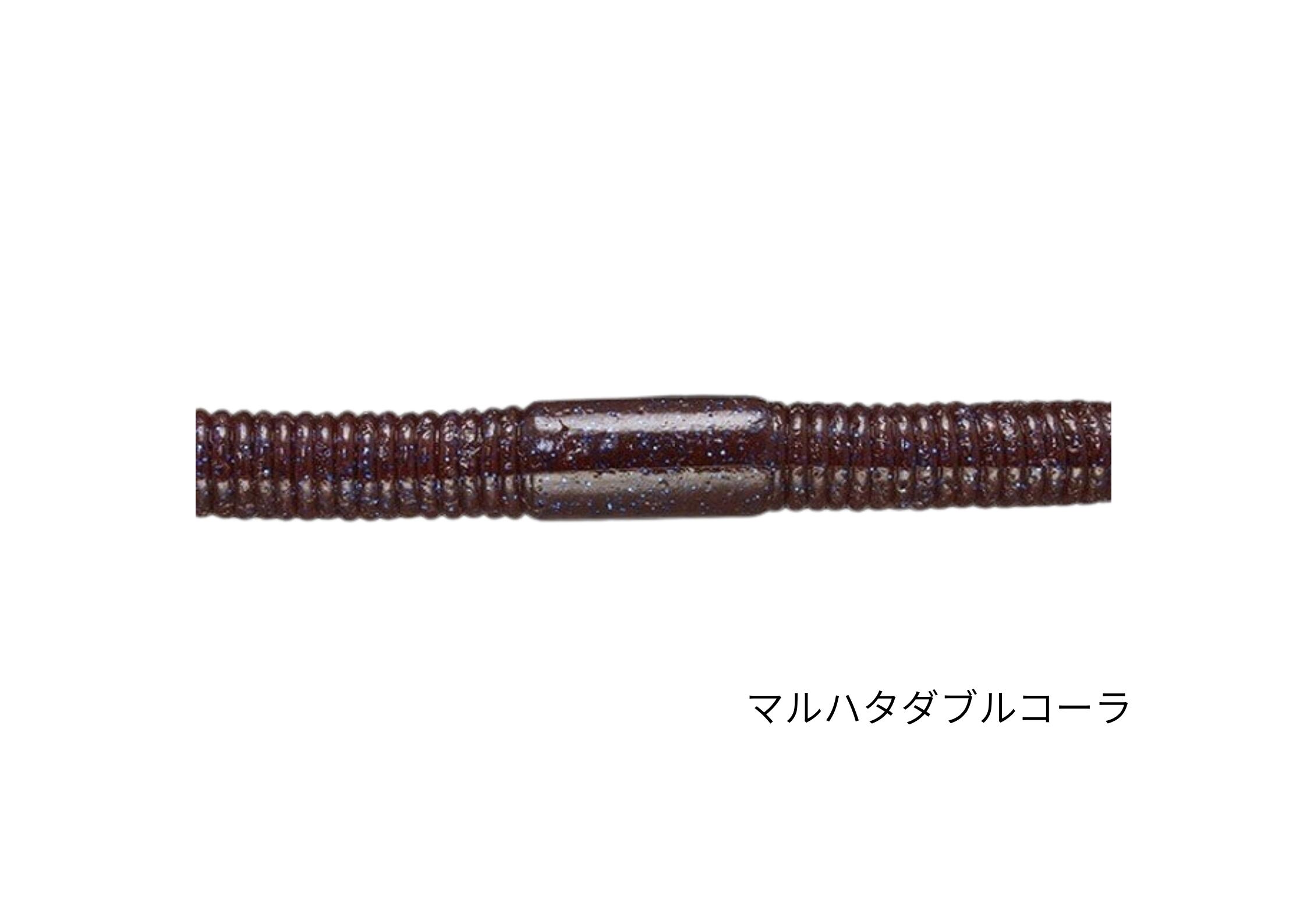 ストレートワームにあえてカーブをつけるというコンセプトから生まれる複雑で艶めかしいロールの効いたアクションでバスを魅了します。シェイク時はもちろん、フォール中は両端から生まれる微波動はさらにアピール力を増し、神経質なビッグバスのバイトを誘発します。