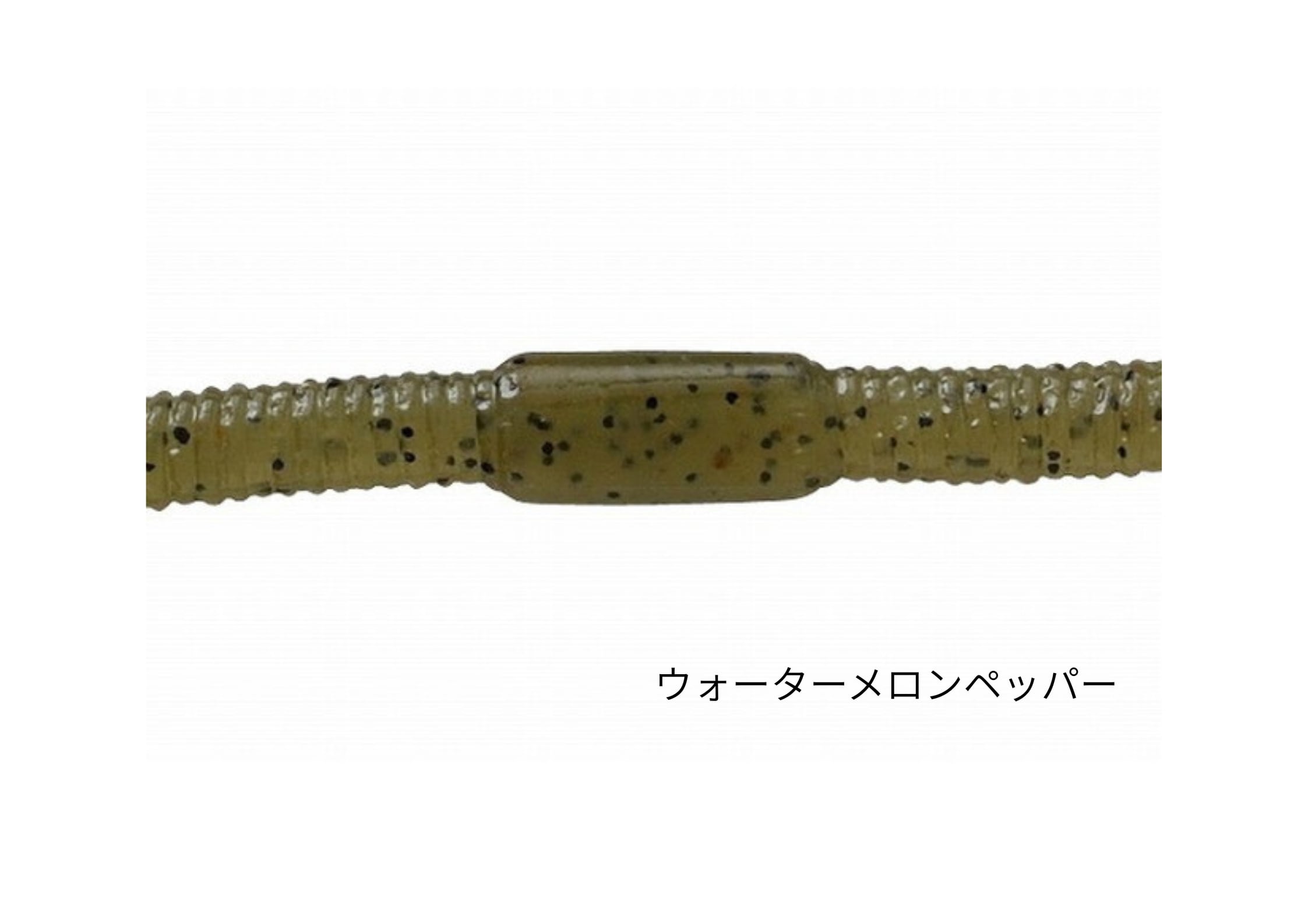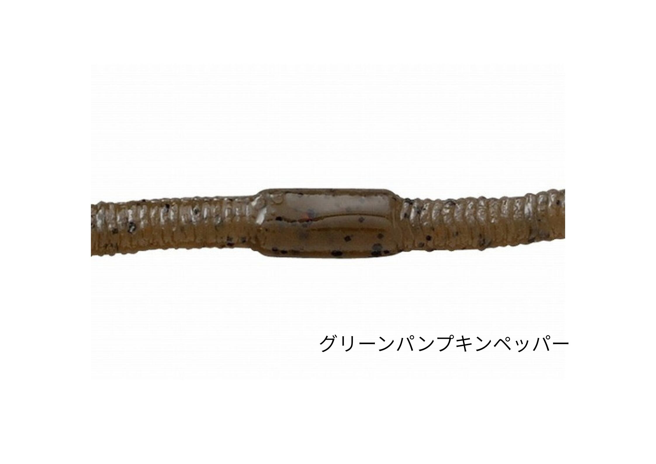 ストレートワームにあえてカーブをつけるというコンセプトから生まれる複雑で艶めかしいロールの効いたアクションでバスを魅了します。シェイク時はもちろん、フォール中は両端から生まれる微波動はさらにアピール力を増し、神経質なビッグバスのバイトを誘発します。
