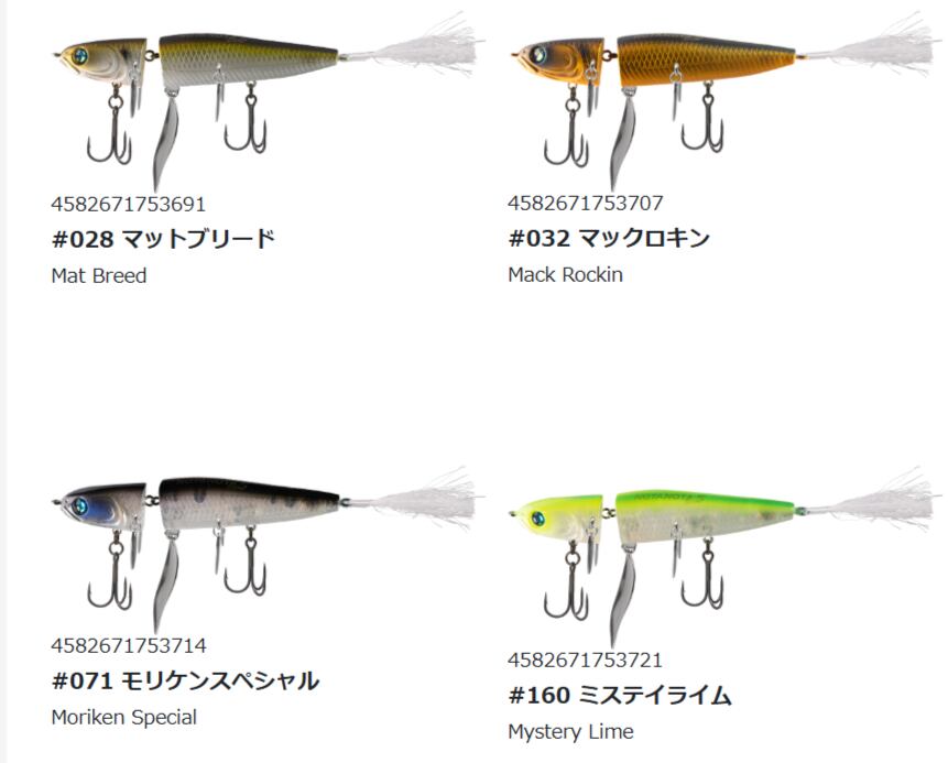 また、ノタノタ特有のサイドに取り付けたブレードの 動きも合わさってナチュラルさとアピールさをも兼ね備えた。 サイドのアイにフックを取り付けることも可能で、ショート バイトも確実に絡め獲る