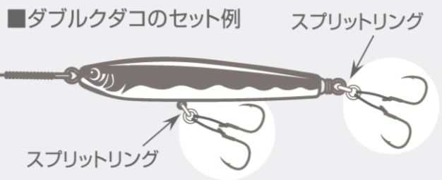 ●代表対象魚:ヒラマサ・カンパチ|【ささめ針/SASAME】プラグ対応、「クダコ」のPEライン付ダブルフックアシスト。