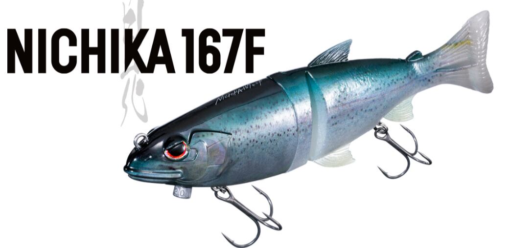 【当日・翌日発送】NICHIKA167Fは、魚の捕食スイッチを強烈に刺激するS字系ビッグベイトです。ジョイントボディが水流を受けて艶めかしく身をくねらせ、本物のベイトフィッシュさながらのナチュラルなスイミングを披露します。スローリトリーブでは大きな弧を描くS字アクション、ジャークを加えれば予測不能なパニックアクションを発生。落ち鮎やハスを偏食する大型バスをターゲットとした攻略に最適で、オープンウォーターからカバー際まで幅広く活躍します。