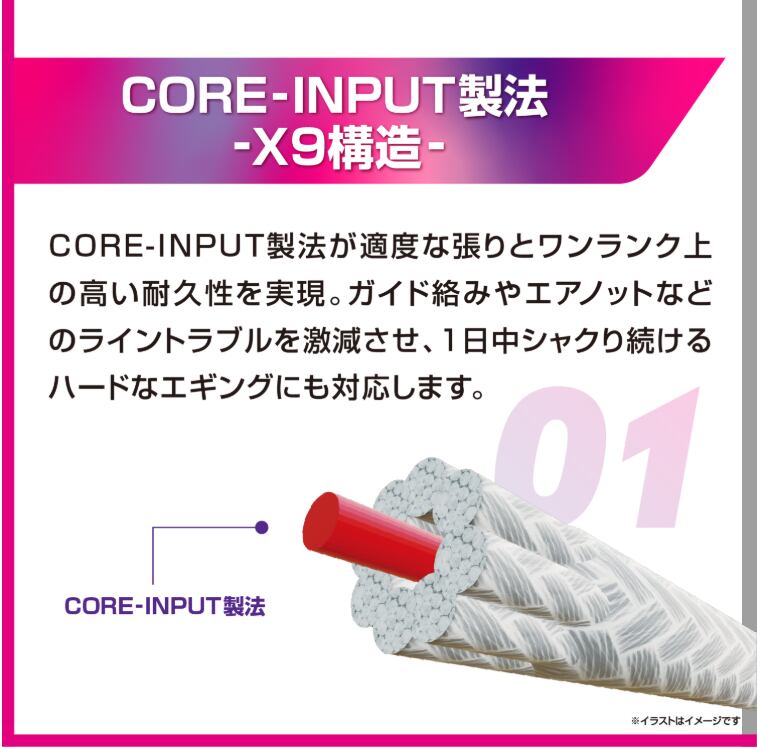 バリバス独自の「Core-Input製法」を採用した9本撚りPEライン。