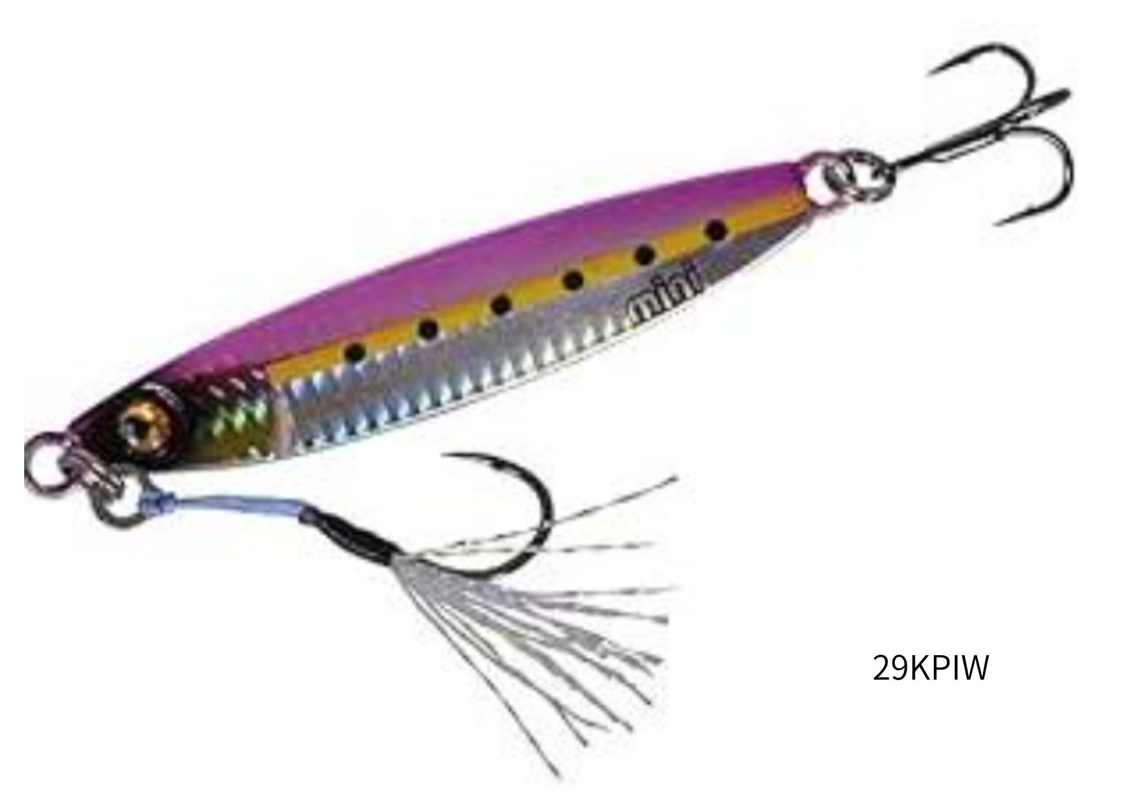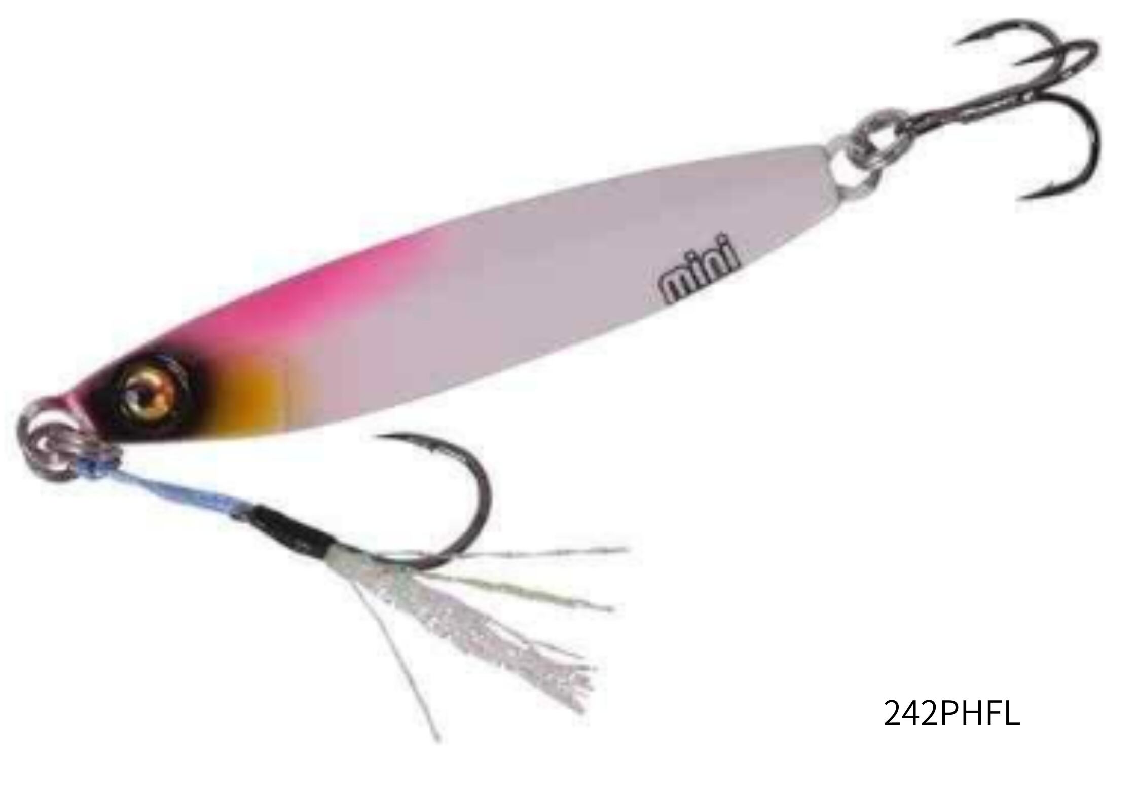 スーパーライトショアジギング(SLS)ゲームで必須とも言える小型メタルジグの決定版「アフターバーナーミニ」がフルリニューアル。飛行姿勢とスイミング姿勢をより安定化させるためボディシェイプを再設計し、スイミング時のウォブリングアクションがより安定しただけでなく各ウェイトによるアクションのバラつきを極限まで無くすことに成功。さらにフックシステムが充実しリアのトリプルフックは勿論、フロントフックにティンセル付きの専用アシストフックを装着させることで喰わせ能力とフッキング率が向上した仕様となった。より実践向けとなったアフターバーナーミニでSLSゲームはより進化することだろう。