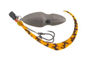 ヘッド、スカート、ネクタイが一連の従来の漁具型ルアーと異なり、ボディとネクタイ+フックを別パーツとして構成。さらに並列にセットしボリューム感を抑えたことでコンパクト化を実現。ボディへのバイトもフッキングに持ち込みます。