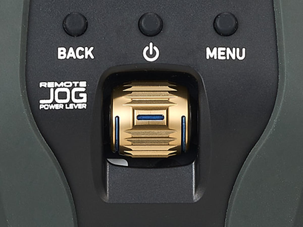 REMOTE JOGでの操作はダイワテクノロジー「JOGパワーレバー」を採用。まるで小型番手を操作するかの様にワンハンドでの操作が可能に。