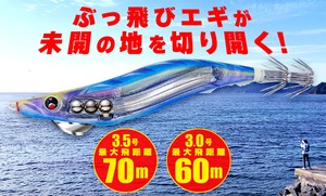 新サイズ3.0号登場!!最大飛距離70mオーバー!(3.0号は60mオーバー)ぶっ飛びエギが未開の地を切り開く!遠くのポイントを狙える「タングステン×マグネット重心移動機構」採用