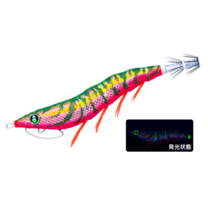 喰わせアクションはそのままに「カラーラトル」 と 「パタパタ波動」 のダブルアピール!!夜光ラトルとレッドラトルのカラーラトル(エビ音)にパタパタの波動で高活性のイカにハイアピール。「エビ音(カラーラトル)」 採用!!「パタパタ®フット Patent」 採用!!パタパタボックスに入れてもわかりやすい!!背中側に 「♪」 マーク付