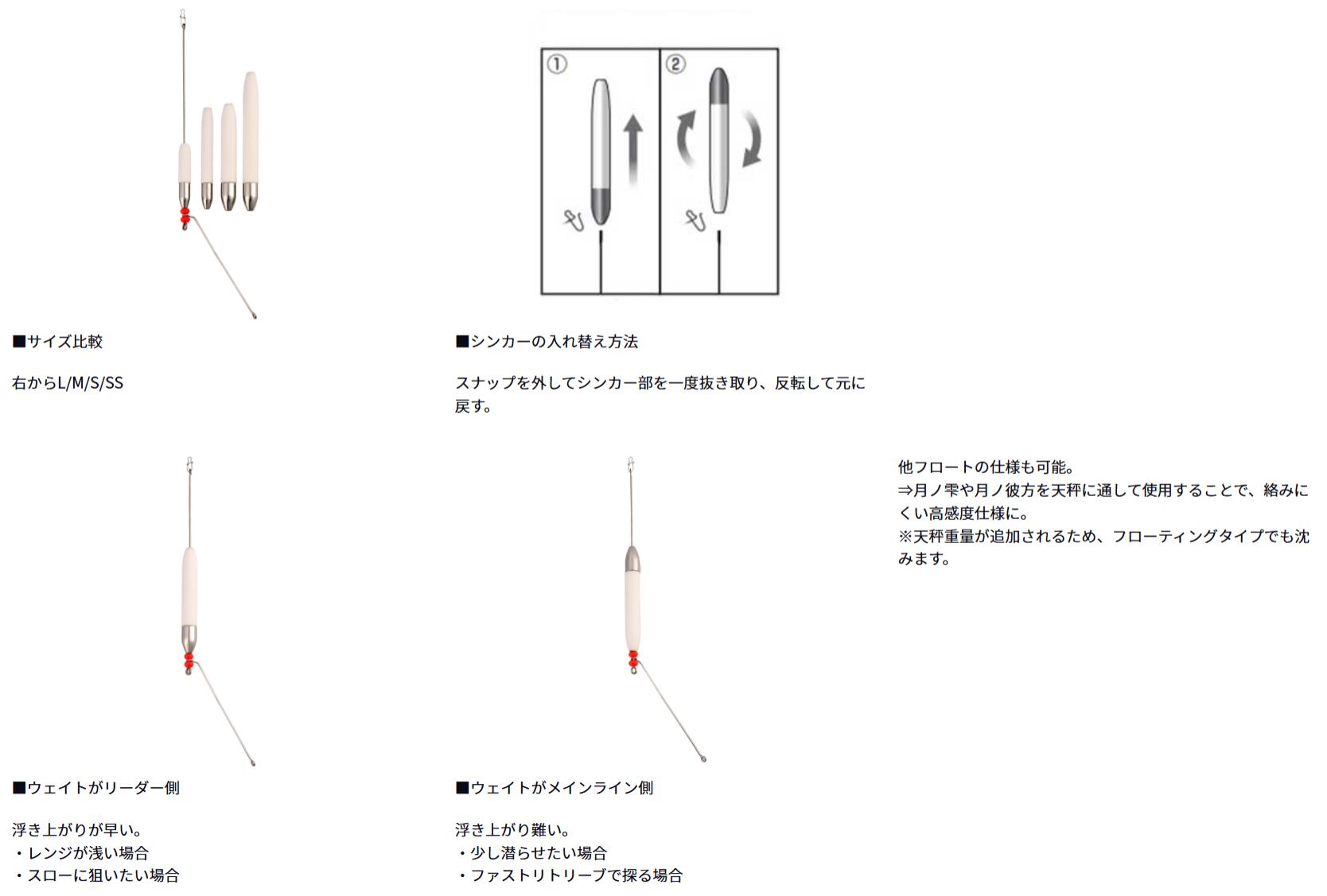 シンカー部を入れ替えることで、シャロー/ディープで使い分け可能。ジグ単では狙えない遠くのポイントを表層からボトムまで攻略が可能。